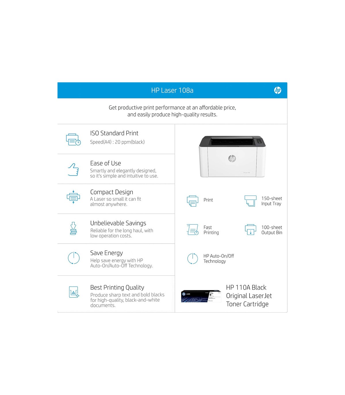 پرینتر HP Laser 108a یکی از مدل‌های جدید و محبوب اچ‌پی در دسته پرینترهای تک‌کاره سیاه و سفید است که با طراحی جمع‌وجور و عملکرد قابل اعتماد، گزینه‌ای عالی برای دفاتر کوچک، فروشگاه‌ها و کاربران خانگی محسوب می‌شود. این دستگاه با ترکیب سرعت بالا و کیفیت چاپ حرفه‌ای، تجربه‌ای روان و مقرون‌به‌صرفه در چاپ روزمره ارائه می‌دهد.